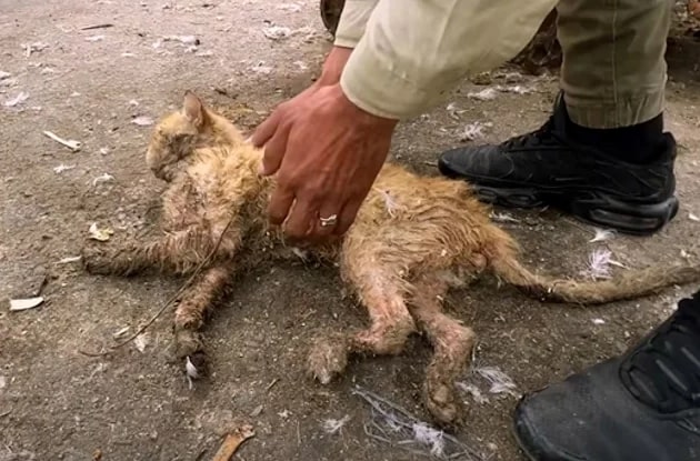 Vorsichtig hoben sie ihn hoch. Er war voller Schlamm und Schmerzen.